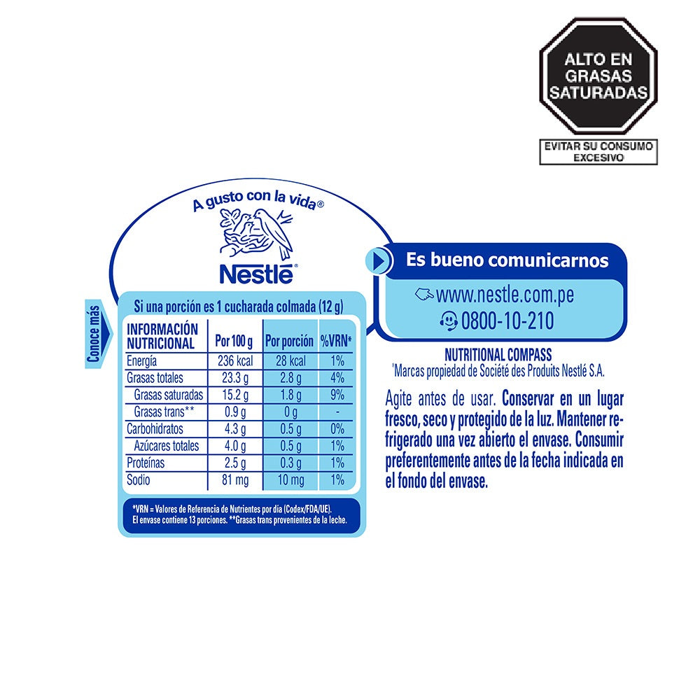 Crema de Leche con la mejor cremosidad y sabor, ideal para tus platos dulces y salados. Una cucharada colmada. Calorías por porción: 28 kcal.