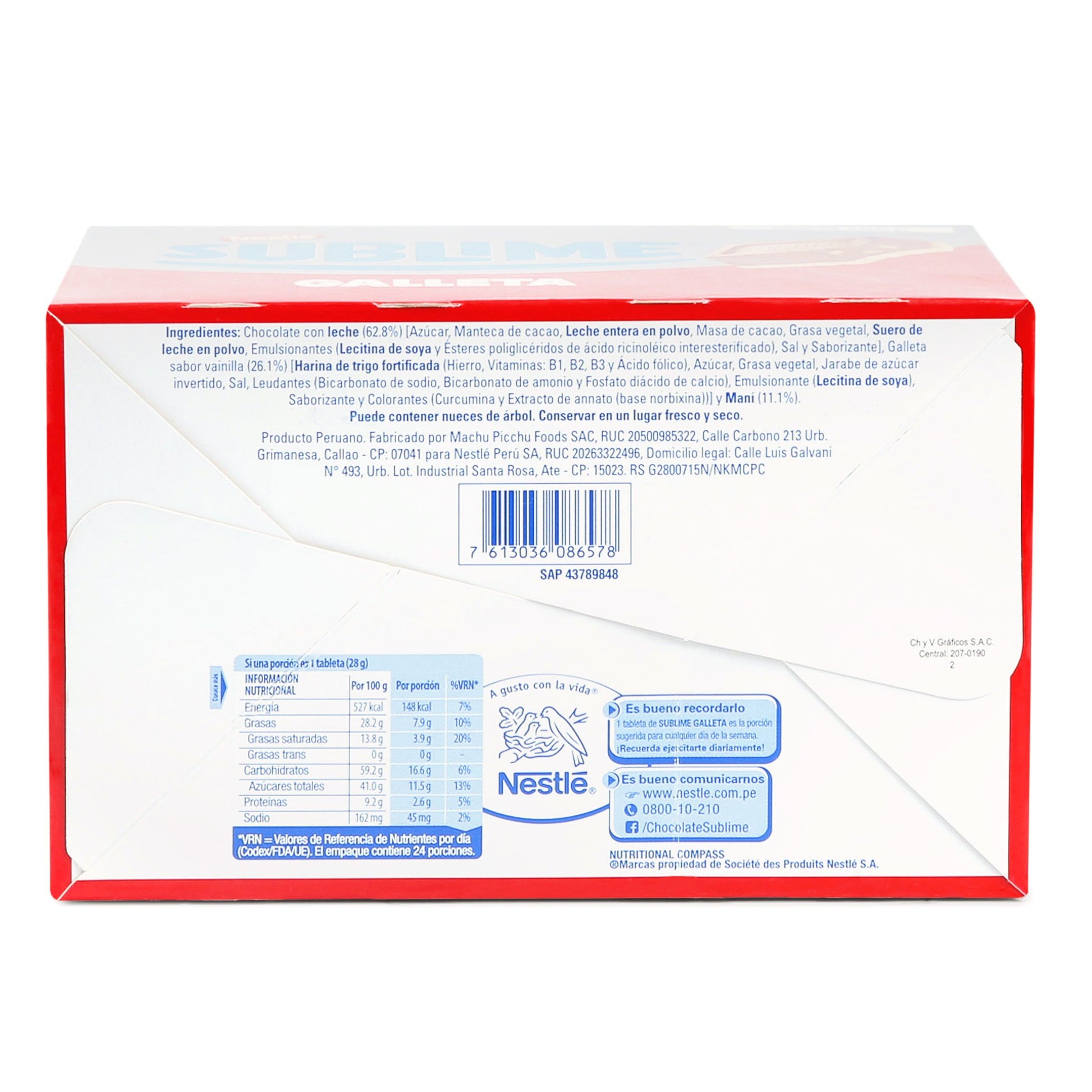 Sublime Chocolate Galleta 24 uni x 28 gr. c/u