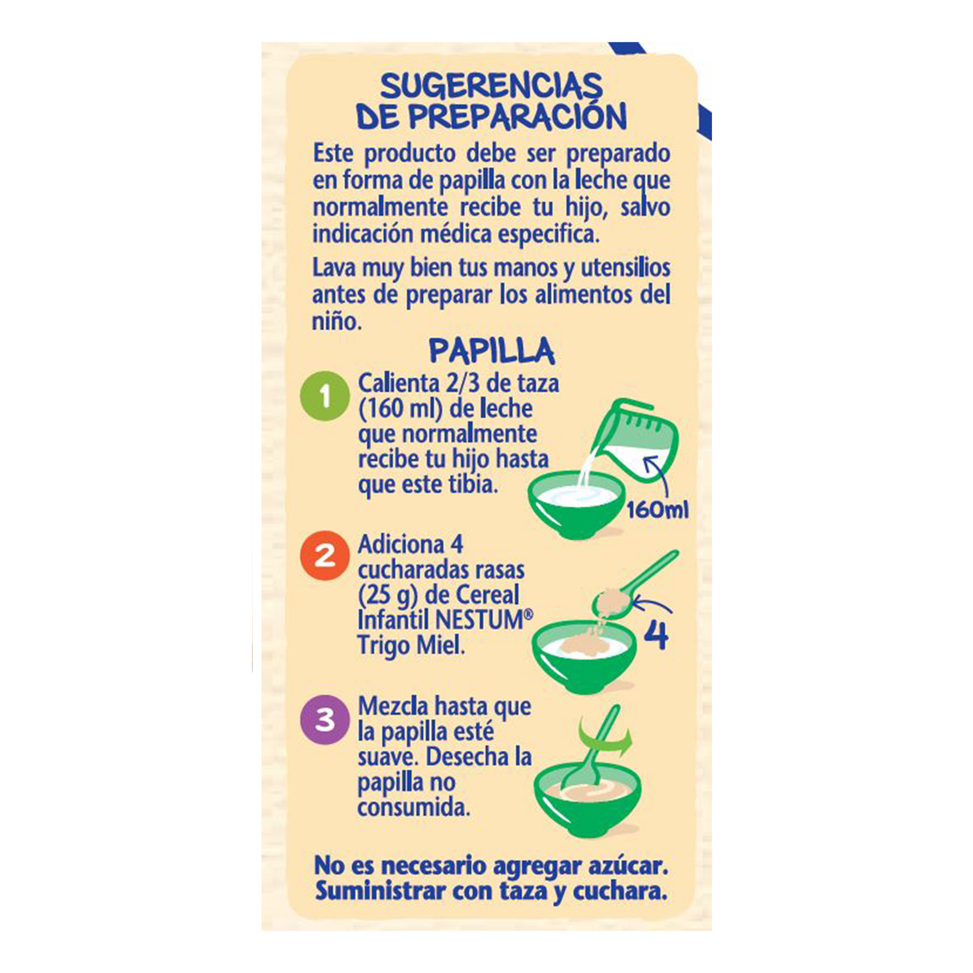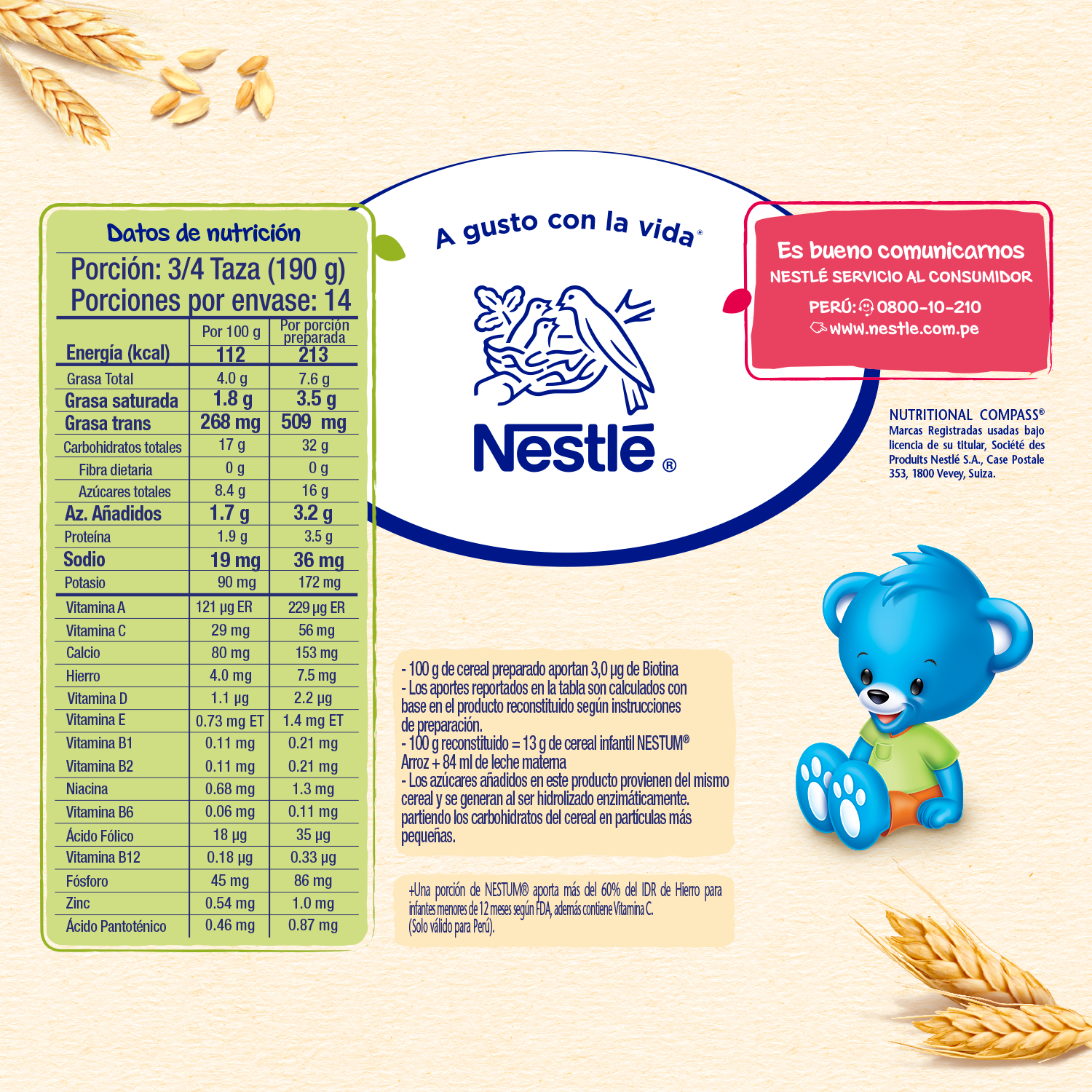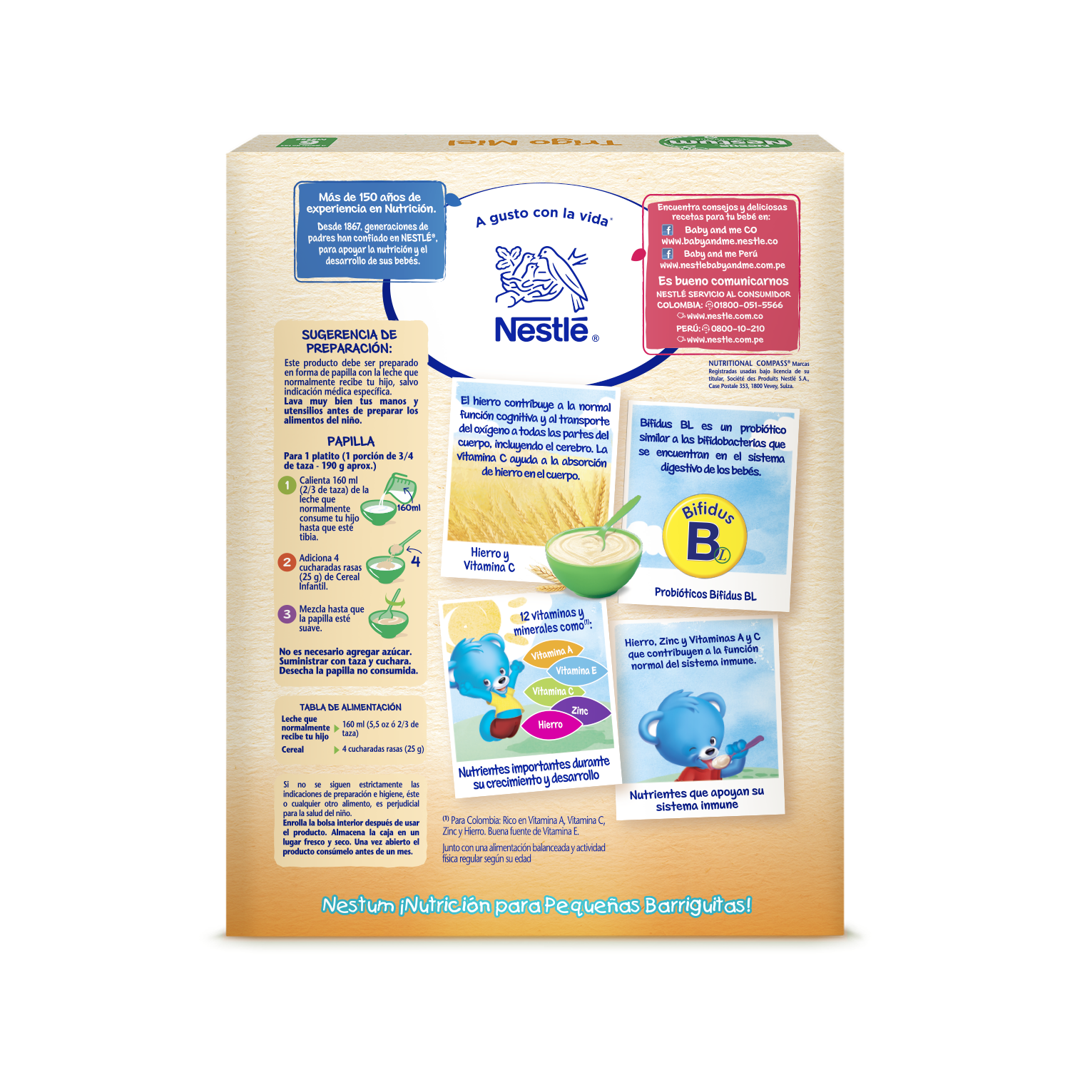 El cereal infantil NESTUM® Trigo Miel está especialmente creado para bebés. Además, una porción aporta el 60% del hierro* diario que tu bebé necesita.