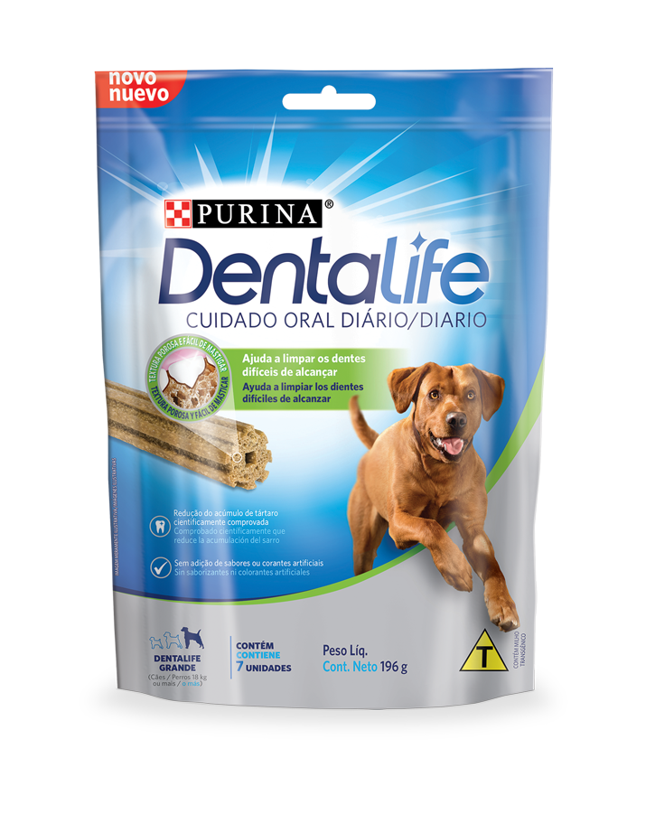 Es un snack ideal para el cuidado oral diario de los perros adultos. Está hecho con una innovadora textura porosa que ayuda a limpiar los dientes en áreas difíciles de alcanzar y es fácil de masticar.