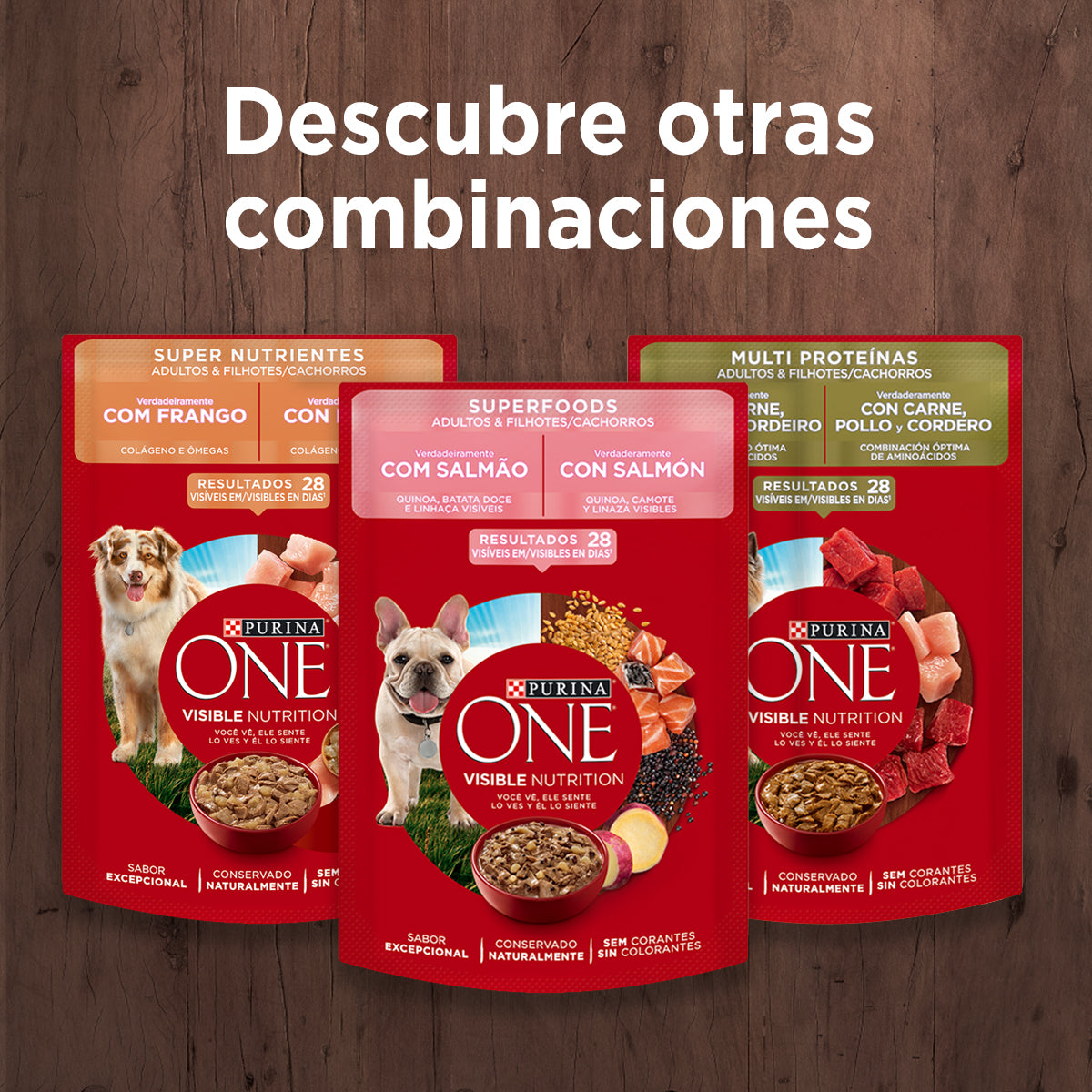 Alimento húmedo para perros Purina One Adulto y Cachorro sabor carne, pollo y cordero de 85gr