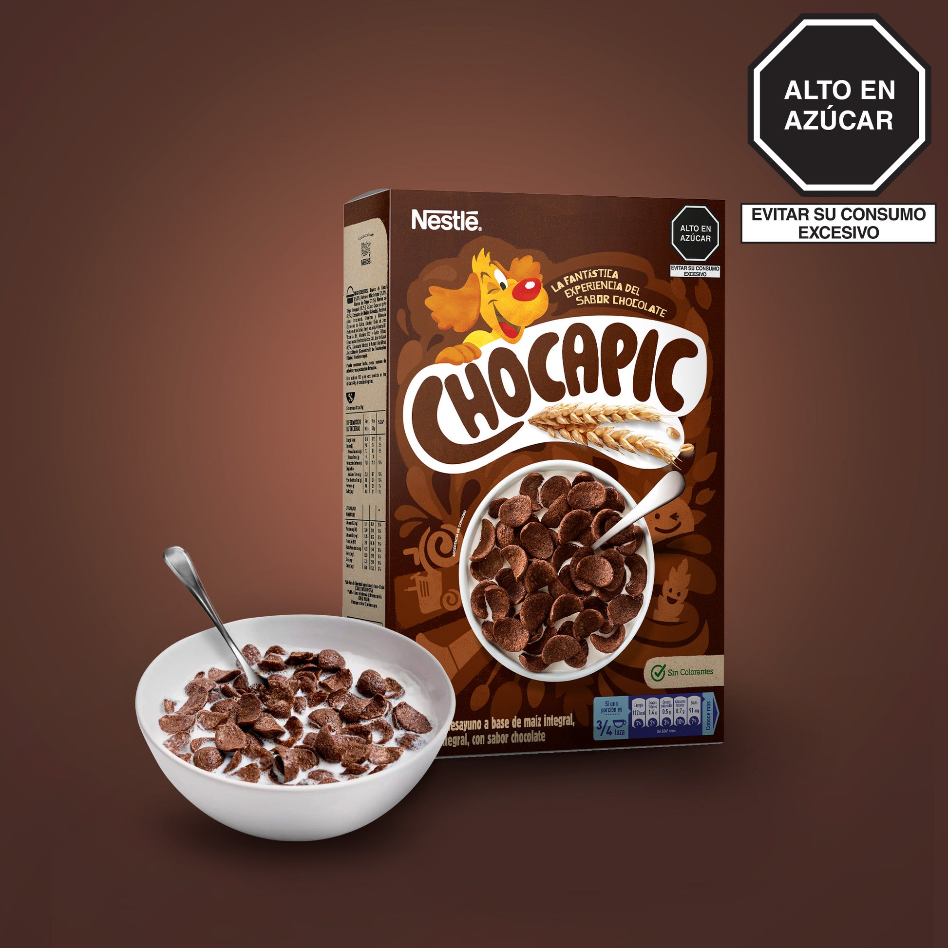 Cereal integral a base de maíz y trigo integral con delicioso sabor a chocolate. Chocapic es rico y divertido
