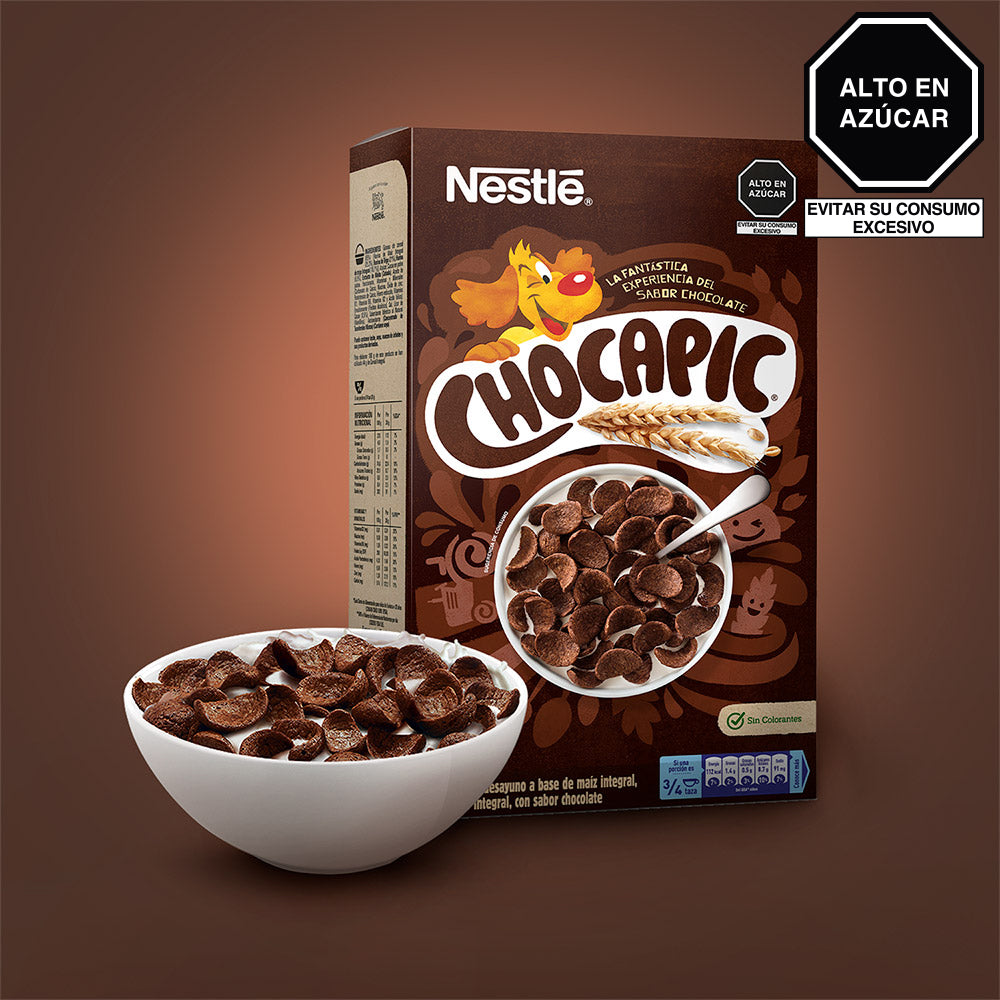 Cereal integral a base de maíz y trigo integral con delicioso sabor a chocolate. ¡Chocapic es rico y divertido!