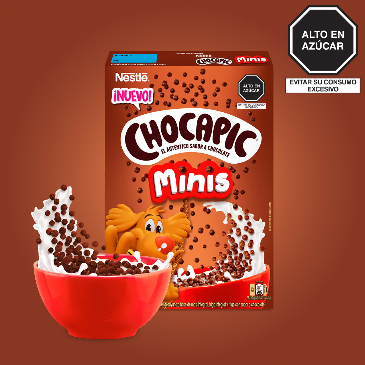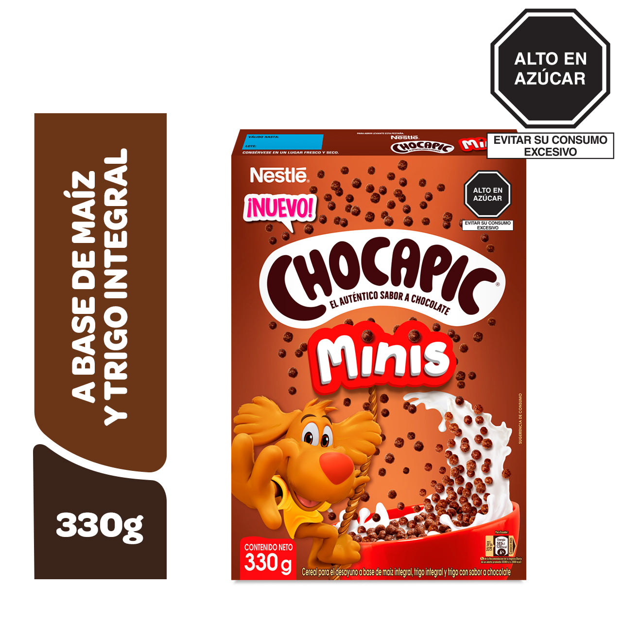 Mezcla de cereales (62.7%)(Harina integral de maíz (25.9%), Harina integral de trigo (19.1%), Harina de trigo (17.7%)), Azúcar, Cocoa en polvo (5.6%), Extracto de malta (cebada), aceite de palma (con antioxidante palmitato de ascorbilo), fuente de calcio (carbonato de calcio), sal, licor de cacao (0.5%), vitaminas y minerales (niacina, hierro, pantotenato de calcio, oxido de zinc, vitamina B6, vitamina B1, vitamina B2, ácido fólico), saborizante artificial, antioxidante (concentrado de tocoferoles mixtos).
