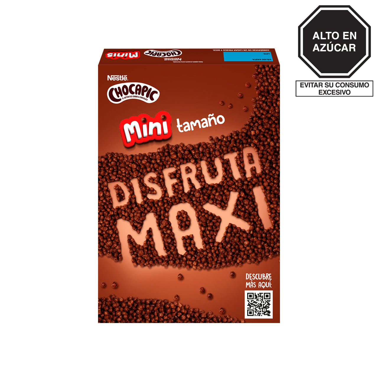 Cereal para el desayuno a base de maíz integral, trigo integral y trigo con sabor a chocolate.