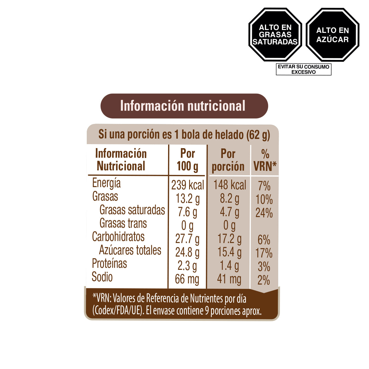Porciones recomendadas: Para adultos se recomienda el consumo de 1 bola de helado y para niños la porción recomendada es de 1/2 bola de helado.