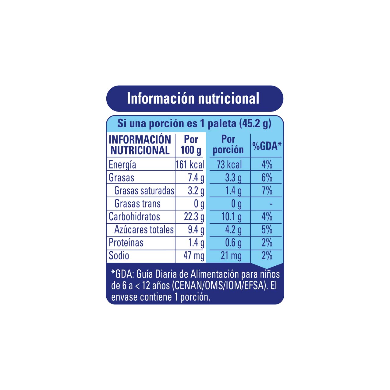 Dextrosa monohidrato, Edulcorantes (Eritritol y Glicósidos de esteviol (960 a)), Harina de lúcuma, Emulsionantes (Ésteres