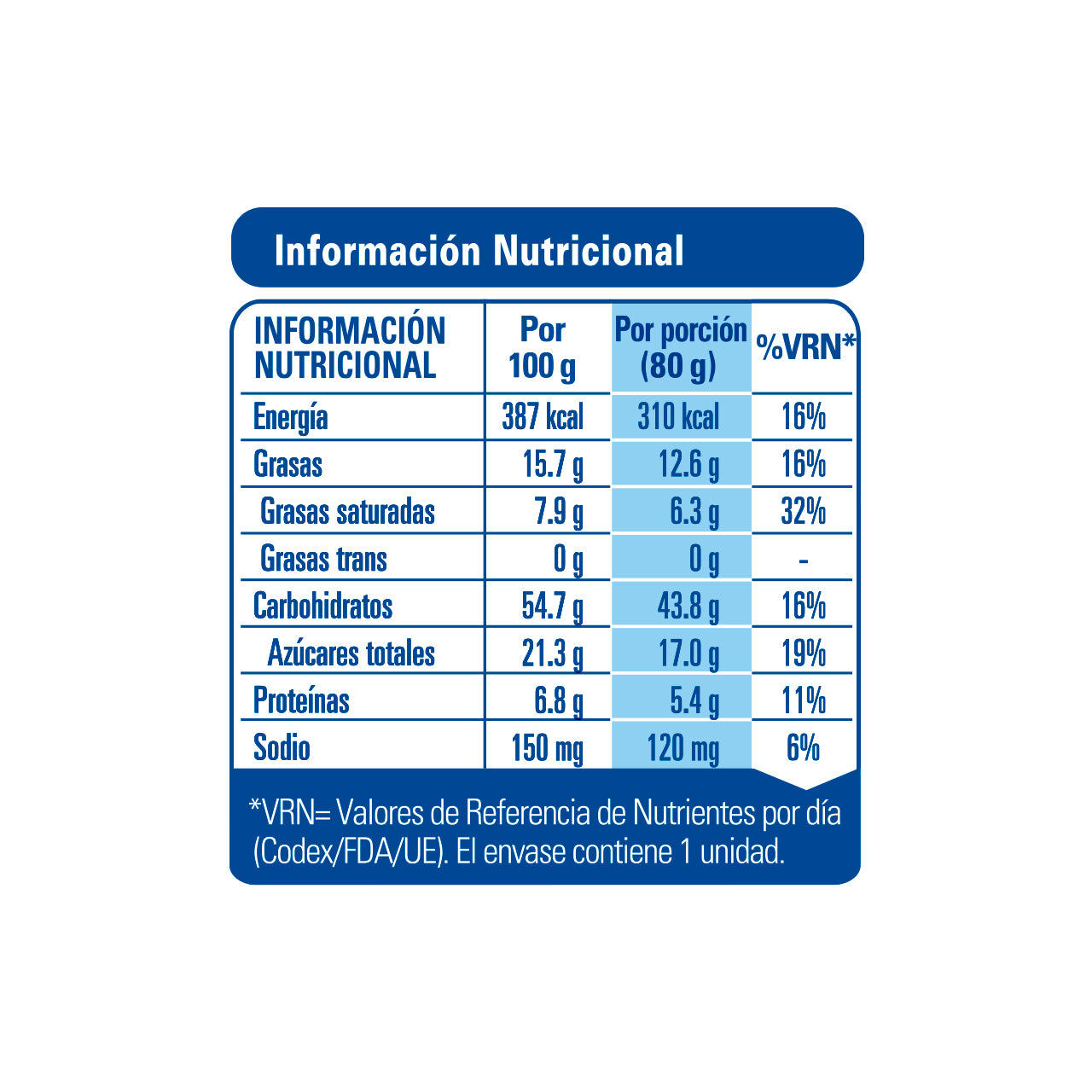Harina de trigo fortificada (Hierro, Vitaminas: B1, B2, B3 y Ácido fólico), Agua, Azúcar, Yema de