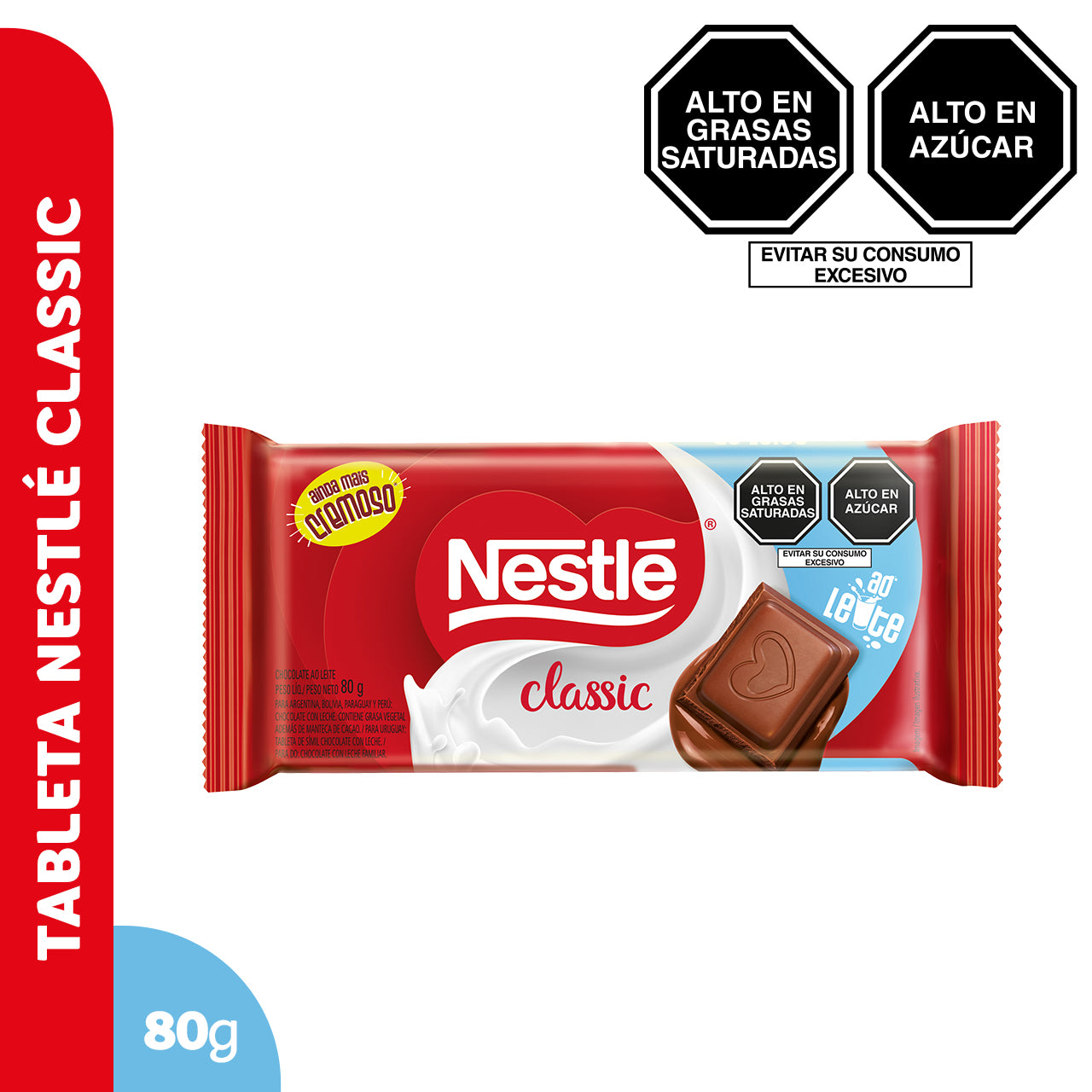 Azúcar, Leche entera en polvo, Manteca de cacao, Masa de cacao, Grasa vegetal, Permeado de suero en polvo, Emulsionantes (Lecitina de soya y Ésteres poliglicéridos de ácido ricinoléico interesterificado) y Saborizante.